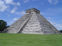 | 7. Tag (Merida - Valladolid) Diese Strecke ist ca. 130 km lang und führt an der wohl bekanntesten Mayastätte - Chichén Itzá vorbei, die wir natürlich auch noch besuchen wollten. Was ist schon ein Yucatán-Urlaub ohne an der weltberühmten Pyramide gewesen zu sein? Zunächst allerdings machten wir noch ein weiteres Erlebnis. Hier, am vorletzten Tag, machten wir die Erfahrung, dass nicht alle Mexikaner so freundlich und ehrlich sind, wie wir das in den vergangenen Tagen erfahren durften. Wir wurden zum ersten Mal beim Tanken beschissen und zahlten ca. 70 Pesos zu viel. Diese ist zwar kein Betrag, der uns jetzt arm gemacht hätte, aber ärgerlich war es doch. Daraus lernte der Frank aber und nahm sich vor in Zukunft die Tankuhr keinen Moment mehr aus den Augen zu lassen. Wir fuhren also etwas enttäuscht weiter und erreichten schließlich Chichén Itzá. Chichén Itzá, "das Wassermaul der Itzaes", ist durch und durch auf Tourismus eingestellt. Schon am Eingang bekommt man durch die vielen Souvenierhändler, die sich auch durch die ganze Anlage durchziehen, ein Gefühl davon wie kommerzialisiert diese Anlage ist. Zudem bewegen sich dort ganze Horden von hauptsächlich Amerikanern über die Anlage, die dann in ihrer bekannten Lautstärke auf sich aufmerksam machen. Dennoch war die Anlage sehr beeindruckend und vor allem das Wissen der Mayas, das in den Gebäuden zum Ausdruck kommt, ist schon sehr erstaunlich. |
