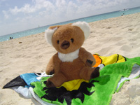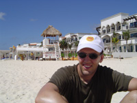 - Playa del Carmen) Heute sind wir richtig früh aufgestanden. Irgendwie konnten wir eh alle nicht schlafen und waren schon um 6.30 Uhr fit. Heute stand zwar nur eine relativ kurze Strecke von ca. 60 km auf dem Programm, dafür hatten wir aber etwas vom Tag. Es ging also nach dem Frühstück los nach Playa del Carmen. Auf dieser Fahrt hatte der Frank schon weniger Probleme und er gewöhnte sich schon langsam an die mexikanischen Eigenarten des Fahrens. Vor allem mit dem Anfahren haben es die Mexikaner nicht so. Während sie sich scheinbar an keinerlei Verkehrsregeln und Tempolimits halten, schleichen sie im Schneckentempo los. Insbesondere bei Kreisverkehren ist das dann sehr lustig, wenn nur ein Auto in den Kreisverkehr hineinfahren kann wobei eigentlich die Lücke groß genug gewesen wäre um mindestens 3 Autos die Einfahrt zu ermöglichen. In Deutschland wären die Fahrer dafür gelyncht worden, wir entschieden uns es mit derselben Gelassenheit zu nehmen wie die Mexikaner. 1 ½ Stunden später waren wir dann in Playa del Carmen angekommen, so gegen 10 Uhr. Zuerst entschieden wir uns einmal an den Strand zu gehen und uns ein wenig in der Sonne zu laben, schließlich sind wir ja lange genug geflogen und wollten auch einmal endlich selbst an den Traumstränden relaxen. Und ich sage Euch, wir wurden nicht enttäuscht. Türkies-blaues Wasser, feiner weißer Sandstrand und Wassertemperaturen von etwa 28 Grad, so ließ es sich leben. Da breitete selbst ich mein Handtuch aus und ließ meinen Pelz in der Sonne brennen. Natürlich musste ich mich nicht wie meine Begleiter eincremen, aber eine Sonnencreme mit einem hohen Lichtschutzfaktor ist für Euch mitteleuropäischen Menschen schon angeraten. Und noch eines stellte ich fest. Hier scheint es nur schöne und perfekte Menschen zu geben, zumindestens überwiegend. |
