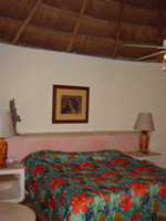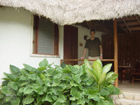 Dörfer bis unsere Fahrt plötzlich gestoppt wurde. Hatten wir uns verfahren??? Waren wir im Kriegsgebiet??? Ich versteckte mich in Franks Rucksack! Plötzlich war da eine Straßensperre aufgebaut, mit Sandsäcken hinter denen ein Soldat mit MG saß. Vor uns ein LKW, der durchsucht wurde und als die beiden anderen Soldaten mit dem fertig waren, waren wir dran. Einer mit G3 im Anschlag und einer der versucht hat mit uns zu kommunizieren. Wohin wir fahren, wo wir herkommen und dann bitte Kofferraum öffnen. Dort durchsuchten sie dann den Koffer von Jessica. Nachdem sie auf sämtliche Unterhosen und schmutzige Socken getroffen waren, hatten sie wohl genug gesehen, packten alles fein säuberlich wieder ein und versuchten den Koffer wieder im Auto zu verstauen. Man muss sagen, die Soldaten waren dabei immer sehr freundlich und ließen uns dann mit einem netten Adios weiterfahren. Allerdings wirkt das auf einen Mitteleuropäer, der es gewöhnt ist von Deutschland ohne Grenzkontrollen bis Portugal oder Italien zu fahren, doch sehr befremdend, wenn mitten im Land plötzlich eine Militärkontrolle stattfindet. Eine halbe Stunde später erreichten wir dann endlich unser Hotel für diesen Abend, das Chicanná Eco Village Resort, Carr. Federal Escárcega - Chetumal km 144. Dieses war mitten im Regenwald gelegen und auf dem Weg von der Hauptstraße zum Hotel hatten wir dann auch unsere erste Begegnung mit einer für diese Region typischen Spinne mit einem angenehm rot behaartem Körper und einer Größe von etwas mehr als einer Männerhand. Leider war die Spinne aber kamerascheu und ich wollte auch nicht aussteigen und sie suchen. Sehr beunruhigt waren wir als wir dann unsere Behausung für die Nacht sahen, ein Bungalow mit Strohdach - alles sehr schön eingerichtet, aber irgendwie vertrauten wir dem Insektenschutz nicht ganz, was der Besuch von Megaameisen an dem selben Abend noch bestätigen sollte. Zur Sicherheit ließen wir also den "Kammerjäger" der Anlage kommen, der zunächst zaghaft sein Insektenspray versprühte. Erst nachdem Frank die Dose an sich riss und den halben Inhalt versprühte, fühlte ich mich etwas sicherer. Da in der Umgebung auch nichts mehr war, was man am Abend unternehmen konnte, entschieden wir uns im Hotel-Restaurant noch etwas zu essen und früh ins Bett zu gehen um den Geräuschen der Natur zu lauschen. Zu dem Hotel muss man sagen, eine sehr gepflegte Anlage mit einem guten Restaurant. Allerdings waren an diesem Abend nur zwei weitere Bungalows belegt, so dass wir uns die Frage stellten, wie solch eine Anlage überhaupt überleben kann. |
